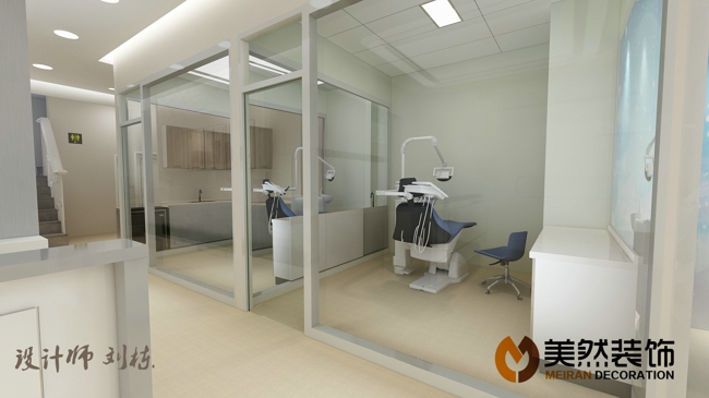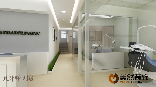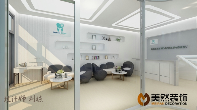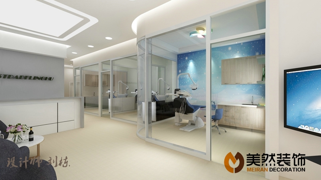 此牙科診所位于涿州錦繡范陽底商,建筑面積230平米,共分候診區、兒童診室、VIP診室,普通診室,種植室、消毒間,牙模操作間等,配置比較齊全,檔次較高,由涿州美然裝飾客服部經理劉棟親自操刀設計。