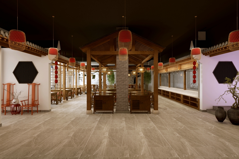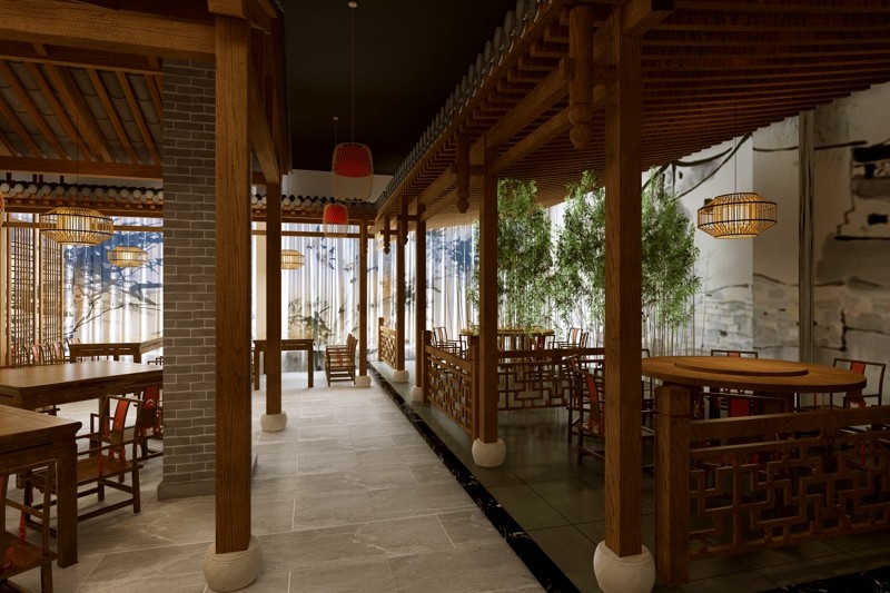 設計師以重慶為中心的古巴渝地區是巴渝文化的發祥地,這片土地孕育了重慶悠久的歷史,以山城這個城市符號為主題結合新派中式風格,在運用重慶山城元素還保留相對的簡約,來達到寧靜雅致的就餐環境。