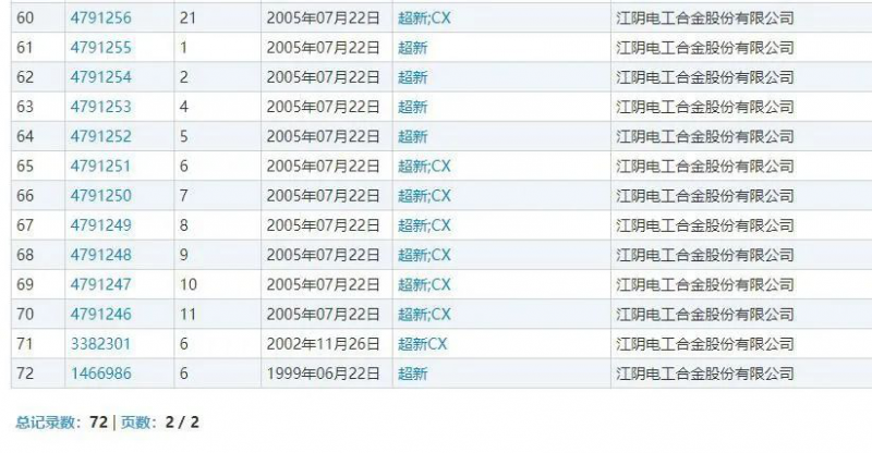 江陰電工合金股份有限公司主要從事高鐵配套產(chǎn)品的研發(fā)、生產(chǎn)和銷售,主要產(chǎn)品包括鐵路接觸線、鐵路承力索、銅合金母線等,該企業(yè)“超新”商標(biāo)是中國馳名商標(biāo),此次通過商標(biāo)質(zhì)押獲得融資1億元。